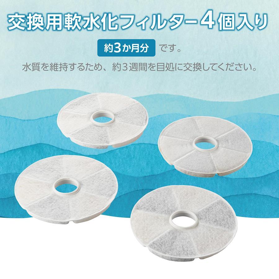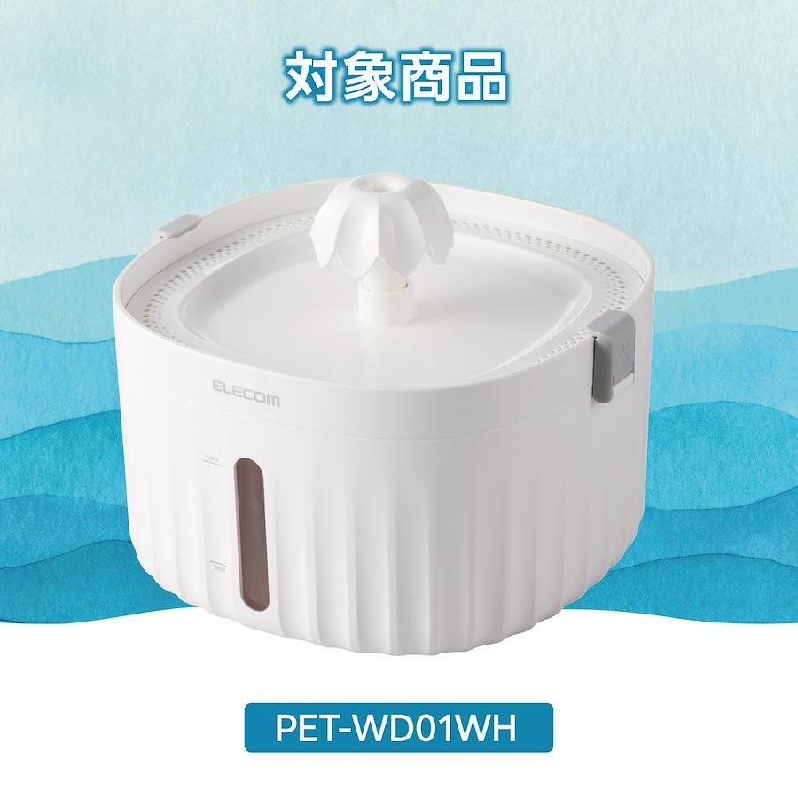 エレコム フィルター式自動給水器「サイレントアクア」(型番:PET-WD01WH)の交換用軟水化フィルターです。※自動給水器本体が販売終了となった場合、販売終了から1年間は本製品の販売を継続します。高密度3層構造のフィルターで、どんなときでもお水を飲みやすくキレイに保ちます。独自設計の高密度3層構造フィルターを採用。360度フィルターで、流れる水を逃さずキレイに保ちます。水道水を約70%軟水化し、ネコちゃん・ワンちゃんの下部尿路の健康維持もサポートします。高密度マイクロ綿層で、食べカスやホコリ、被毛をろ過。清潔な状態をキープします。イオン交換樹脂層で、水道水に残るカルシウムとマグネシウムを除去。まろやかな軟水でネコちゃん・ワンちゃんの体調をケアします。