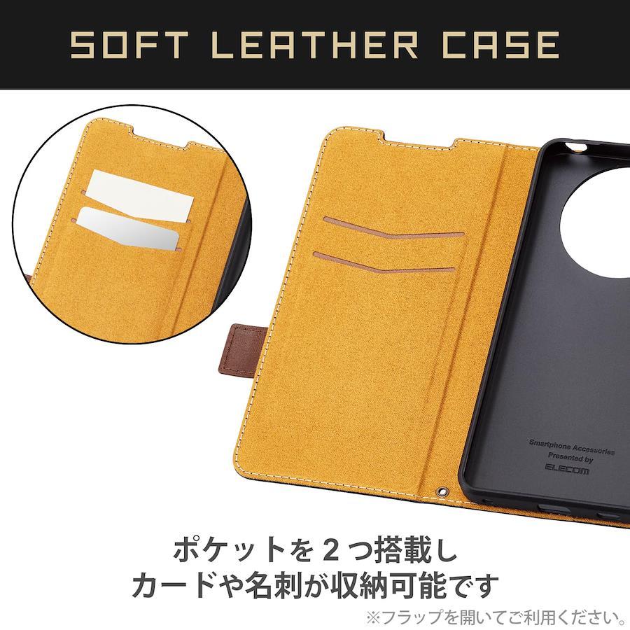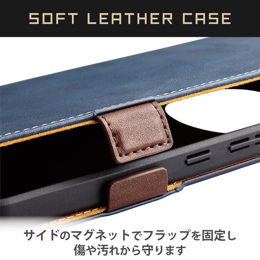 日常使いに便利な機能を多数搭載した、革のようなやわらかな風合いの手帳型ソフトレザーケースです。