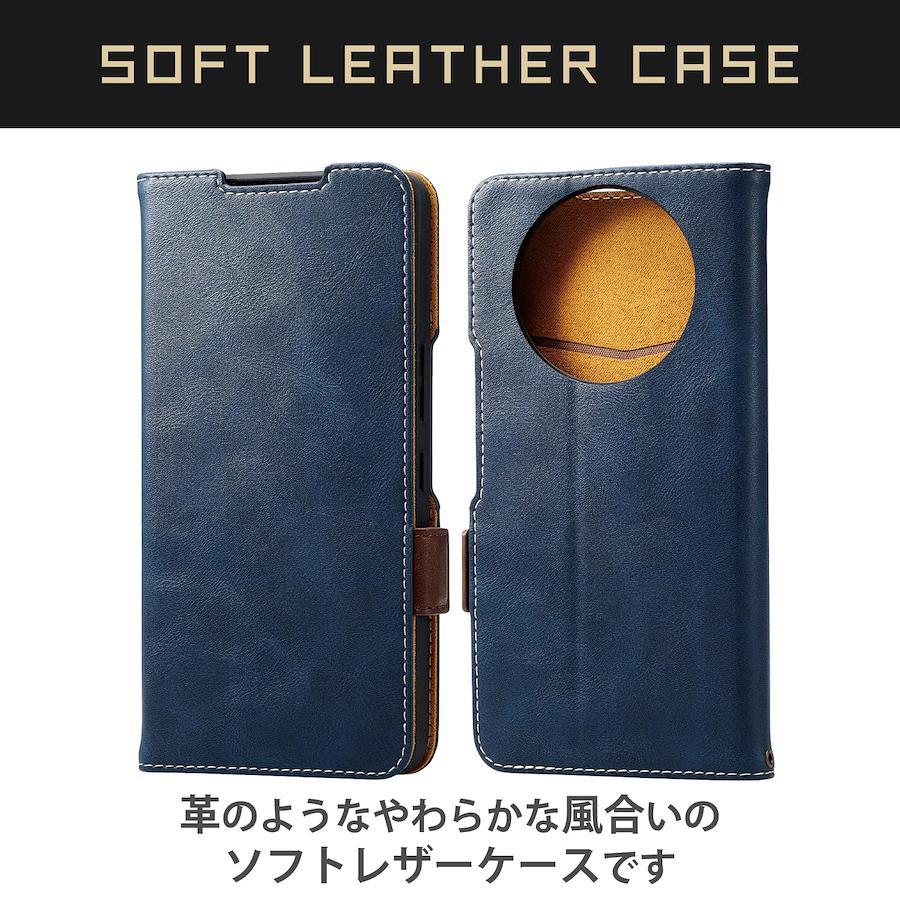 ■日常使いに便利な機能を多数搭載した、革のようなやわらかな風合いの手帳型ソフトレザーケースです。