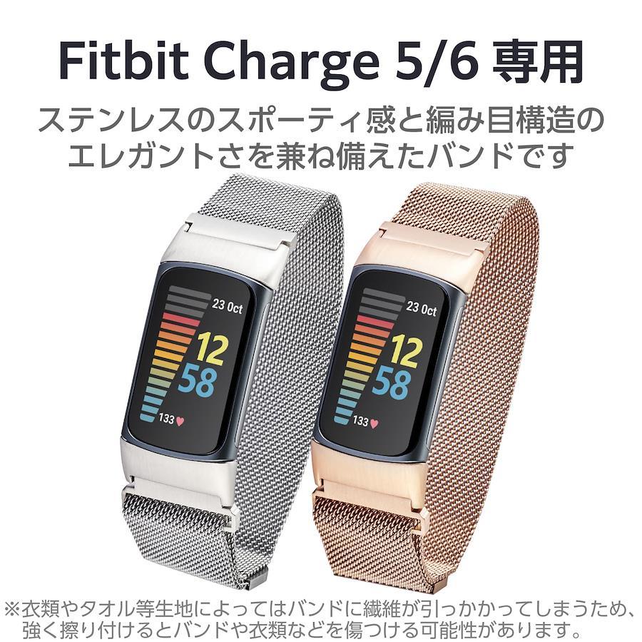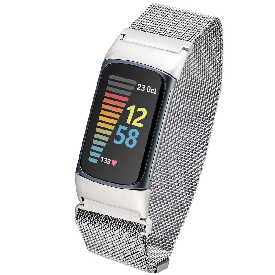 細かいサイズ調整ができ、編み込み構造により手首へのフィット感が高い、エレガントなデザインのFitbit Charge 5用ステンレスバンドです。