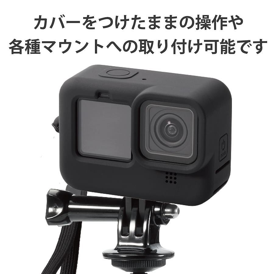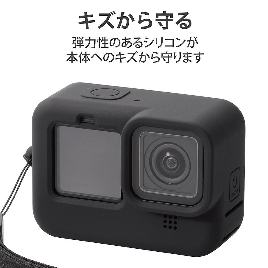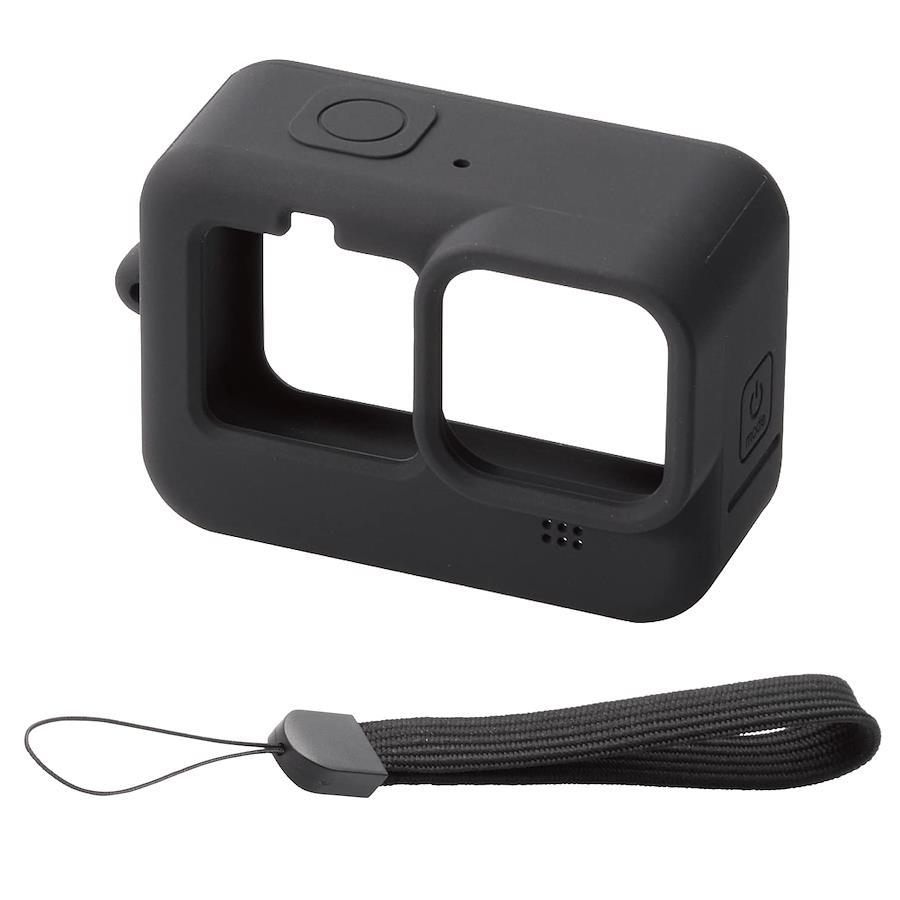 3営業日以内に発送≪新品未開封品≫:詳しくは「商品の仕様」「商品の説明」をご確認ください。/弾力性のあるシリコンでアクションカメラを傷や汚れ、衝撃から守るGoPro HERO10/9 Black用シリコンカバーです。/シャッターボタン、モードボタン、ドア部分をゴミやホコリから保護する構造です。/カバーを付けたままの操作はもちろん、各種マウントへの取付も可能です。/持ち運びに便利なハンドストラップが付属しています。