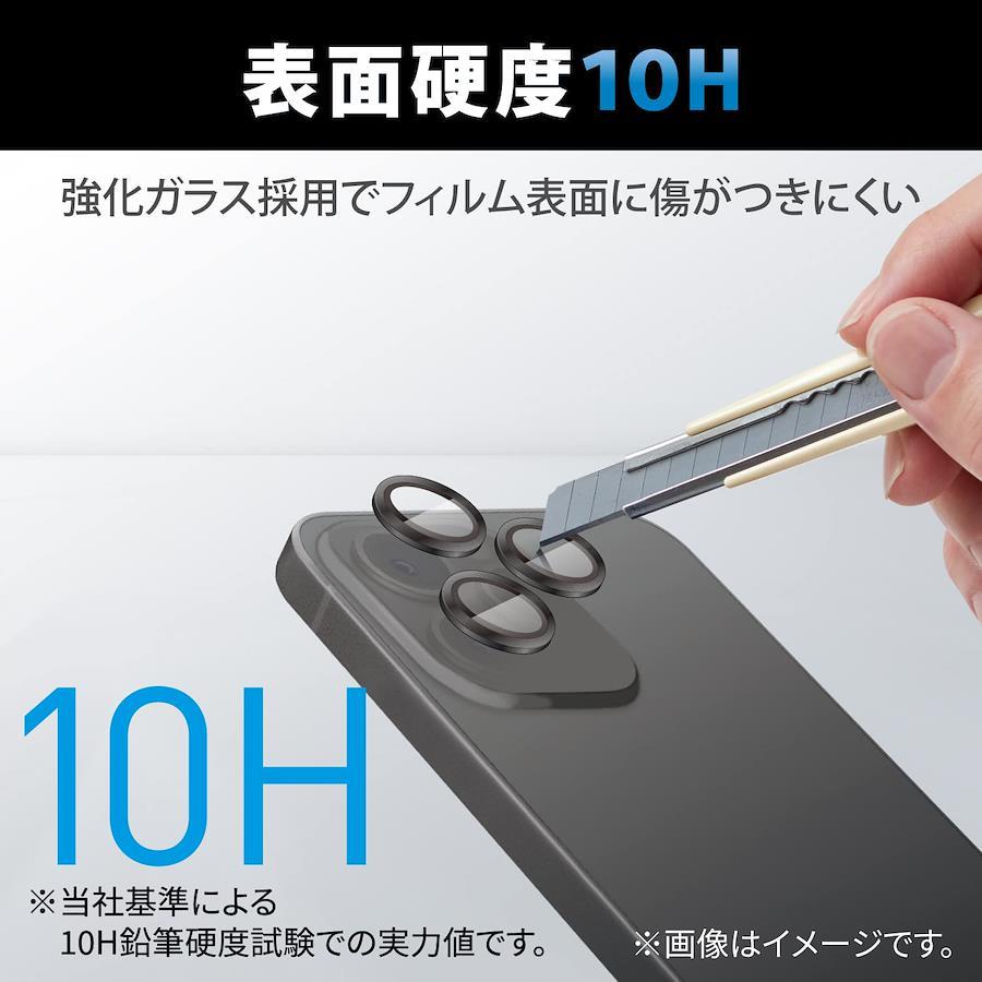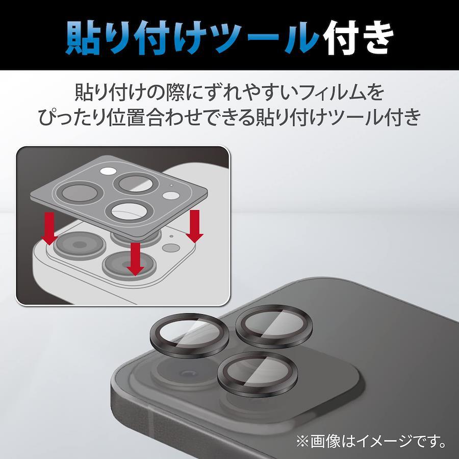 エレコム iPhone 14 Pro / 14 Pro Max レンズカバー カメラ保護 ガラスフィルム 3枚入り アルミフレーム 光沢 強化ガラス