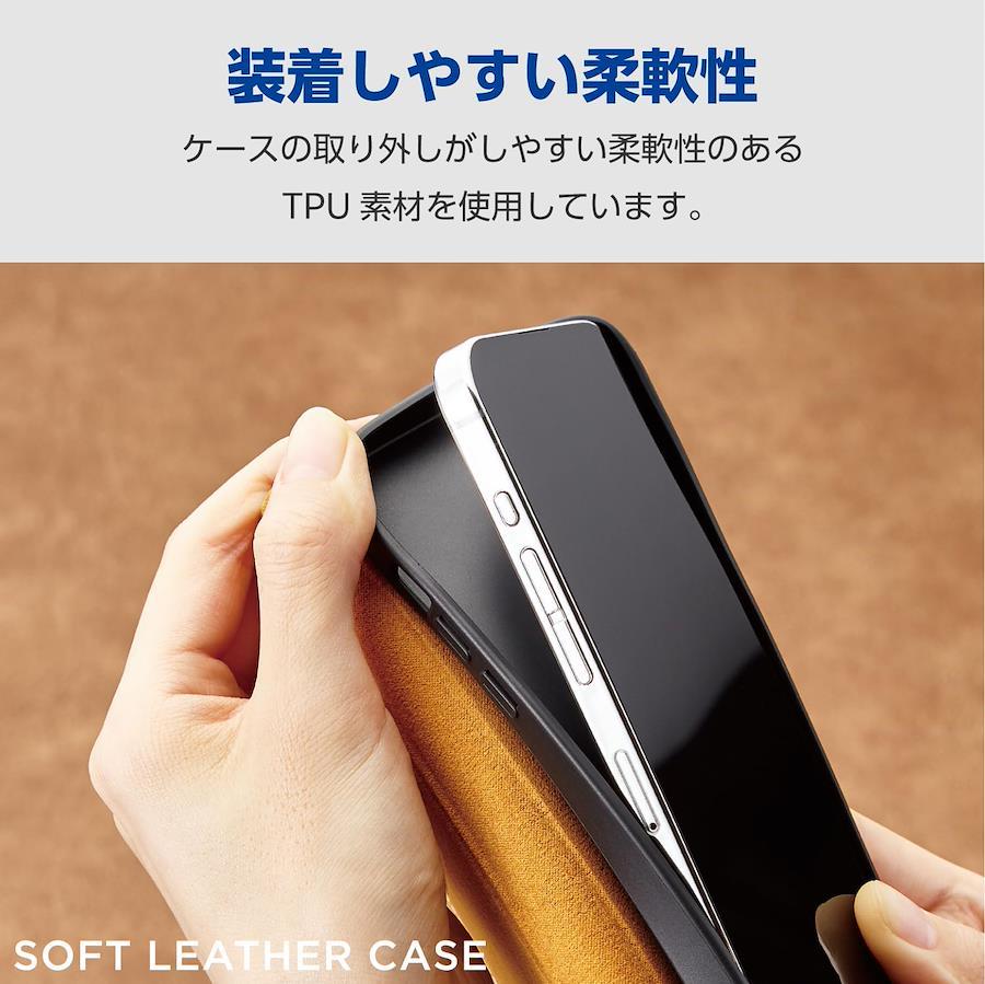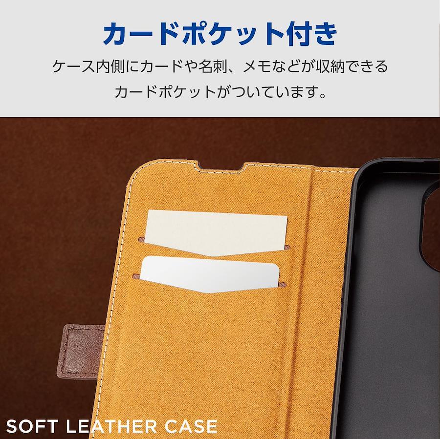 便利な機能を搭載した、革のようなやわらかな風合いのソフトレザーケース(手帳型)です。