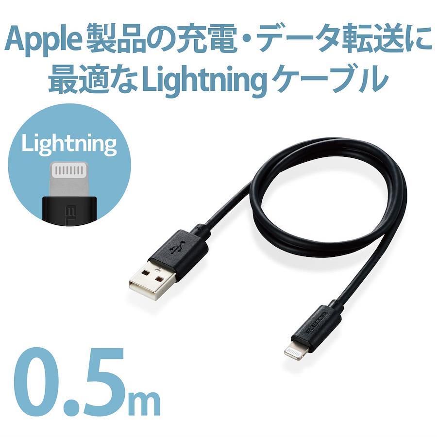 【 仕様 】■ コネクタ形状1:Lightning(オス)■ コネクタ形状2:USB‐A(オス)■ 長さ:0.5m ※コネクター含まず■ 使用目的・用途:USB‐A端子を搭載したパソコン及び充電器とLightningコネクターを搭載したiPhone,iPad,iPodを接続し、充電・データ転送が可能です。 ※iPadはパソコンからは充電出来ません。■ 対応機種(iPhone):iPhone 13 Pro Max,iPhone 13 Pro,iPhone 13,iPhone 13 mini,iPhone 13 Pro Max,iPhone 13 Pro,iPhone 13,iPhone 13 mini,iPhone 12 Pro Max,iPhone 12 Pro,iPhone 12,iPhone 12 mini■ 対応機種(iPhone):iPhone SE(2nd generation),iPhone 11 Pro Max,iPhone 11 Pro,iPhone 11,iPhone XS Max,iPhone XS,iPhone XR,iPhone X,iPhone 8 Plus,iPhone 8,iPhone 7 Plus,iPhone 7,iPhone SE,iPhone 6s Plus,iPhone 6s,iPhone6 Plus, iPhone 6,iPhone 5s■ 対応機種(iPad):iPad Pro 10.5-inch,iPad Pro 12.9-inch (2nd generation),iPad Pro 9.7-inch,iPad Pro 12.9-inch (1st generation),iPad Air (3rd generation),iPad Air 2,iPad Air■ 対応機種(iPad):iPad mini (5th generation),iPad mini 4,iPad mini 3,iPad mini 2,iPad (9th generation),iPad (8th generation),iPad (7th generation),iPad (6th generation),iPad (5th generation)■ 対応機種(iPod):iPod touch(7th generation),iPod touch(6th generation)■ 対応機種(その他):AirPods(第1世代)、AirPods(第2世代)、AirPods(第3世代)、AirPods Pro、AirPods Max■ パッケージ:袋+ステッカー■ カラー:ブラック■ 保証期間:1年■ 環境配慮事項:EU RoHS指令準拠(10物質)