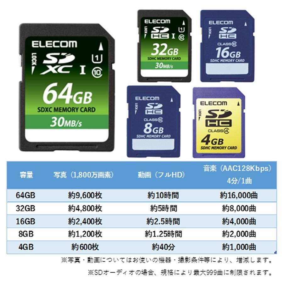 メモリ規格:SDHC、Class10、UHS-I最大転送速度:読み出し:30MB/s最低保証速度:10MB/s保証期間:1年(データ復旧サービス含む)