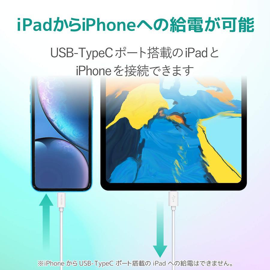 Lightningコネクタを搭載したiPhone・iPod・iPadと、USB-Cポートを搭載したパソコンを接続し、充電・データ転送ができるUSB-C to Lightningケーブルです。USB Power Deliveryに対応し最大20V 3A(60W)の大電流を送電可能で、iPhoneの高速充電に対応しています。※USB-C搭載iPadの充電には対応しておりません。USB-C搭載iPadからLightning搭載端末への給電は可能です。対応したUSB-Cポート付きの充電器と接続することで、家庭用コンセントから充電可能です。