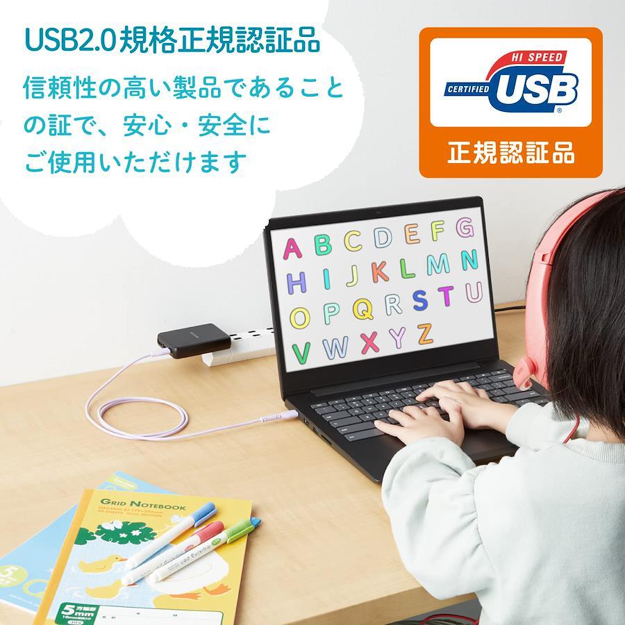 ケーブルグリップ部分が長く、小さなお子様が握りやすい・抜きやすいUSBケーブルです。