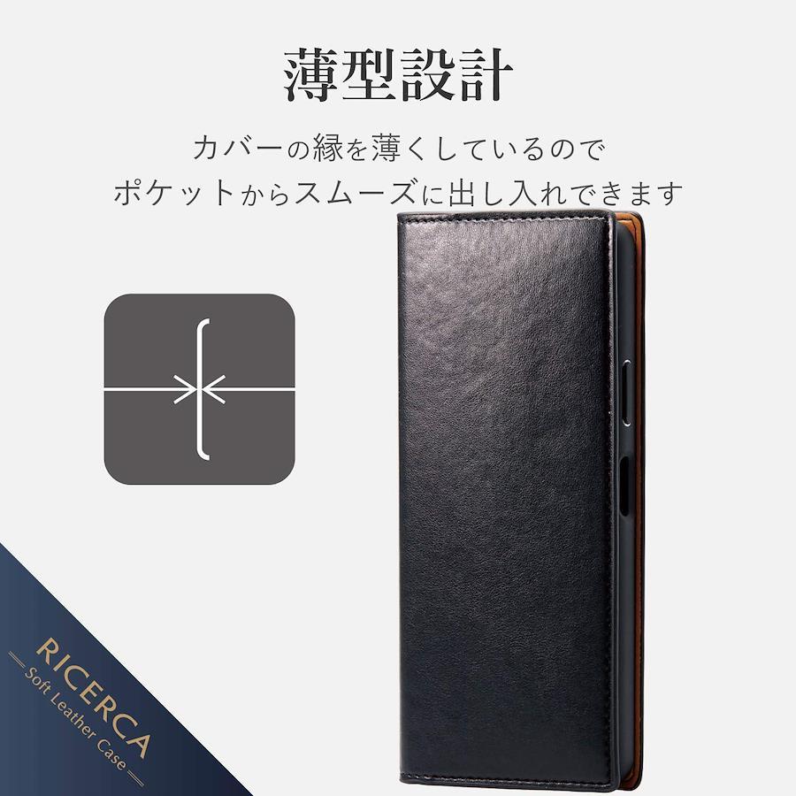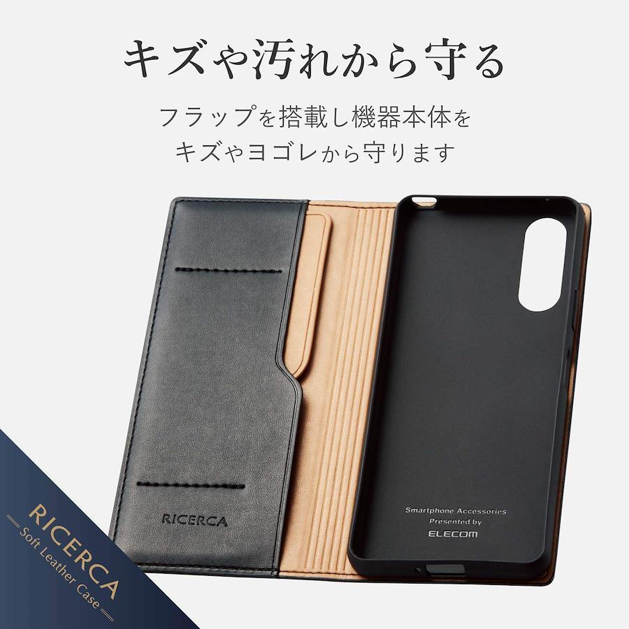 ジャケットに美しく収まるよう、スマートにデザインされたXperia 10 II用ソフトレザーケース(手帳型)です。