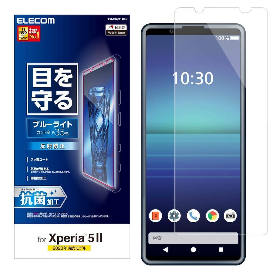 【 説明 】■ Xperia 5 IIの液晶画面をキズや汚れから守る、ブルーライトカットタイプの反射防止フィルムです。■ 液晶ディスプレイが発する光の中の青い部分「ブルーライト」を約35%カットします。※ ブルーライトは目の角膜や水晶体で吸収されずに網膜まで到達し、網膜の機能低下を引き起こす場合があると言われています。■ 光の映り込みを抑え、見やすい画面を実現する反射防止タイプです。■ 貼り付け面にシリコン皮膜をコーティングし、接着剤や両面テープを使わずに貼り付け可能な自己吸着タイプです。貼りやすく、貼り直しも可能です。■ 時間の経過とともに気泡が目立たなくなる特殊吸着層を採用したエアーレスタイプです。■ 小さな気泡ができたときには、指などで押し出すことで気泡を抜くことができます。■ ハードコート加工により、フィルム表面のキズを防止します。■ 抗菌加工により