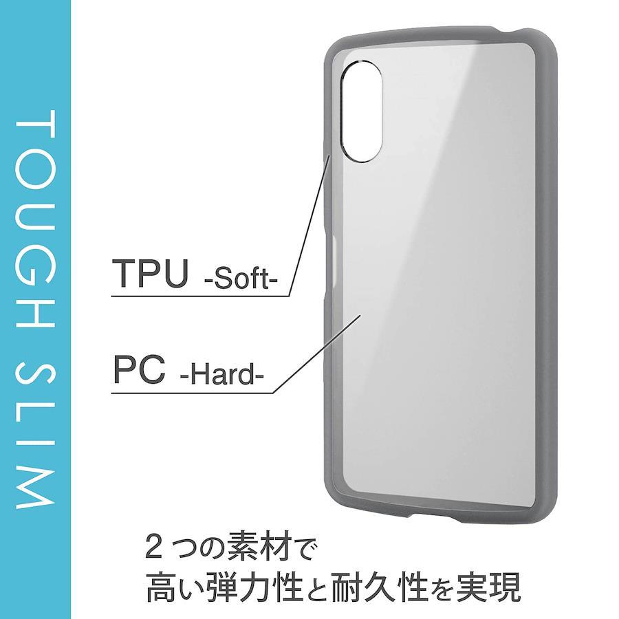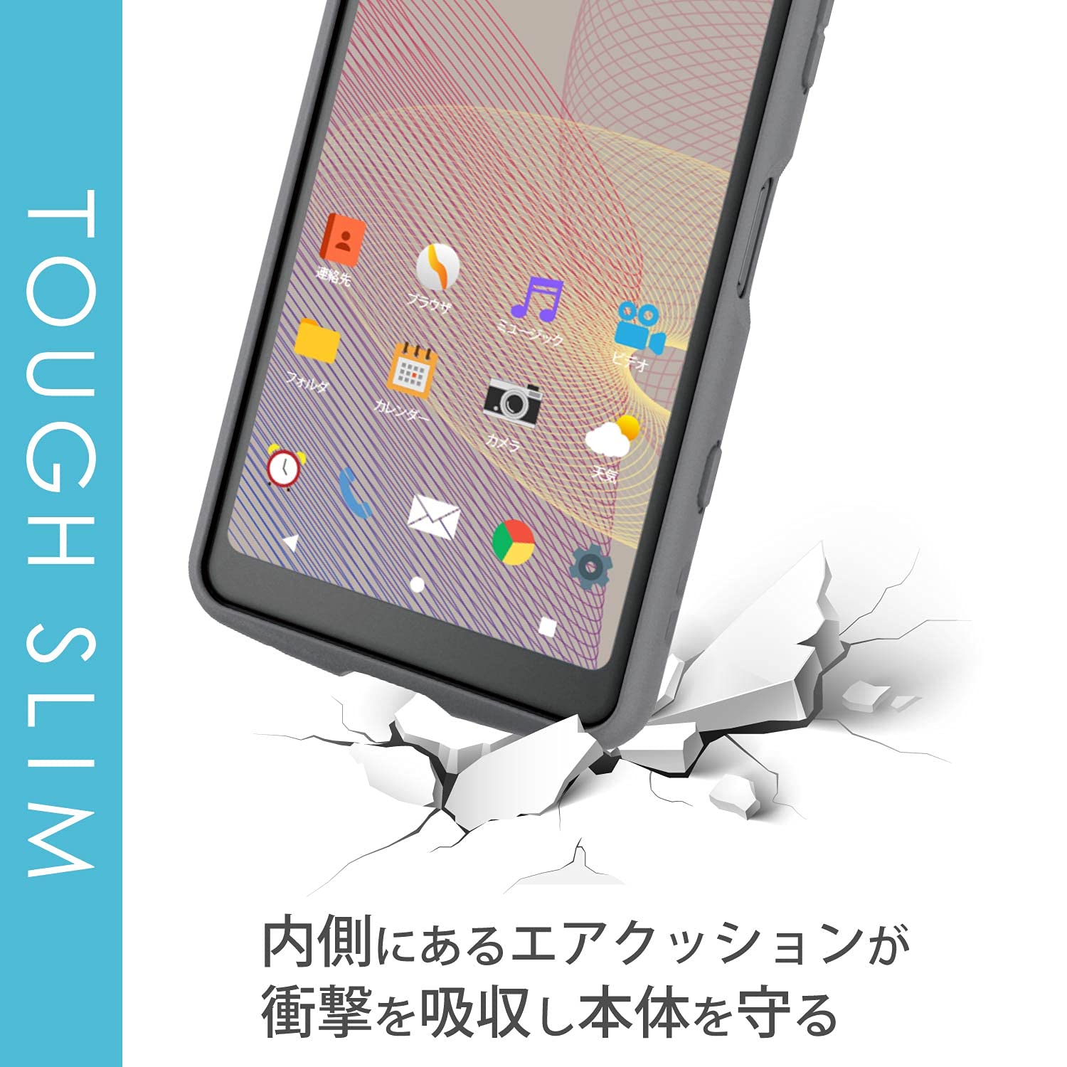 全周に配置した独自設計のエアクッションが衝撃を吸収し、背面には高硬度8Hの特殊樹脂を採用した、Xperia Ace II用TOUGH SLIM LITEケースです。