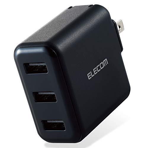【 説明 】■ 家庭用コンセントからスマートフォンやタブレット等を充電、給電できるAC充電器です。■ 出力端子が3ポートありますので、スマートフォンなどを3台同時に充電が可能です。■ 1ポート最大出力12W(5V/2.4A)、合計最大出力18W(5V/3.6A)の高出力タイプです。※ 全ポート合計の電流値を超えた場合、保護回路が動作しすべての端子で充電できなくなる場合があります。■ 接続された機器を自動検知し、最適電流で充電できるおまかせ充電に対応しています。■ スマートフォン等に付属もしくは対応する充電用USBケーブルを使用して充電可能です。※本製品に充電用ケーブルは付属していません。■ 未使用時は電源プラグを折りたたんで充電器本体に収納可能です。スッキリとコンパクトに収納できるので、持ち運びにも便利です。■ トラッキング現象による火災の防止に役立つ、絶縁キャップ付きのコンセントプラグを採用しています。※ 端末本体や充電器が濡れた状態で充電すると、異常な発熱・焼損の原因となり大変危険ですのでおやめください。
