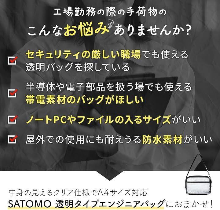 工場から日常使いまで幅広く活躍。透明&帯電防止の多機能エンジニアバッグです。