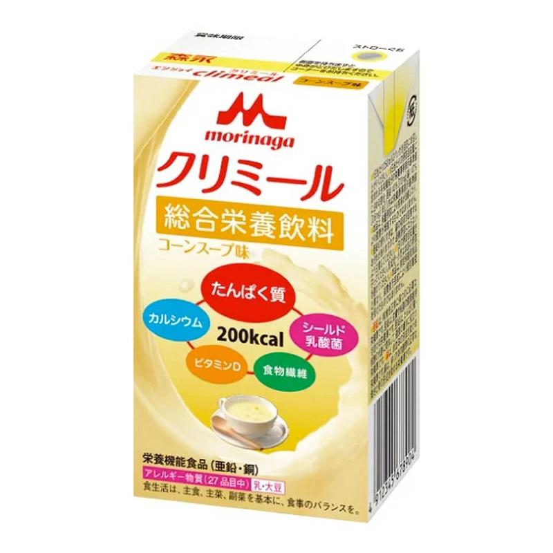 商品区分:栄養機能食品(栄養成分:亜鉛、銅)【エンジョイクリミール コーンスープ味の商品詳細】●補食に適した飲みきりサイズの125mLで200kcaL摂取できます。●1本でエネルギー・タンパク質のほか、主要栄養成分をバランスよく補給できます。●忙しい朝に、食事の量が不足しがちな時に、食事が偏っている時におススメです。●亜鉛・銅・ビタミン類・食物繊維を強化しています。●乳酸菌を100億コ配合●8つの味で、おいしく飲めます。【栄養成分(栄養機能食品)】亜鉛、銅【保健機能食品表示】・亜鉛は、味覚を正常に保つ、皮膚や粘膜の健康維持を助ける、たんぱく質・核酸の代謝に関与して健康維持に役立つ栄養素です。・銅は、赤血球の形成を助け、多くの体内酵素の正常な働きと骨の形成を助ける栄養素です。【品名・名称】栄養補助飲料【エンジョイクリミール コーンスープ味の原材料】デキストリン(国内製造)、乳たんぱく質、植物油、グラニュー糖、難消化性デキストリン、乳酸菌(殺菌)、乾燥酵母/カゼインNa、pH調整剤、乳化剤、塩化K、炭酸Mg、V.C、香料、クチナシ色素、クエン酸鉄Na、香料、V.E、ニコチン酸アミド、グルコン酸亜鉛、パントテン酸Ca、V.B6、グルコン酸銅、V.B2、V.B1、V.A、葉酸、ビオチン、V.B12、V.D、(一部に乳成分、大豆を含む)【栄養成分】熱量:200kcal、たんぱく質:7.5g、脂質:6.7g、糖質:26.8g、食物繊維:2.5g、ナトリウム:110mg、カルシウム138mg、亜鉛:1.4mg、銅:0.14mg、ビタミンD:1.2μg【アレルギー物質】乳成分、大豆【保存方法】室温で保存できますが、なるべく冷所に保管してください。【注意事項】・牛乳・大豆由来の成分が含まれています。アレルギーを示す方は使用しないでください。・容器に漏れ・膨脹等が見られるもの、開封時に内容物の色・臭い・味に異常があるものはお飲みにならないでください。・原材料の一部が沈殿・浮遊することがありますが、品質には問題ありません。開封前によく振ってからお飲みください。・静脈内ヘは絶対に注入しないでください。・容器が落下、衝撃等により破損しますと、無菌性が損なわれます。取扱いには十分注意してください。・容器に漏れ・膨脹等がみられるもの及び容器の破損しているものはお飲みにならないでください。・室温で保存できますが、おいしさを保つために冷所での保管をおすすめします。・直射日光があたる場所や、高温な場所、凍結するような場所で保管しますと、風味劣化等の性状変化が認められる場合があります。★亜鉛に関する注意・本品は、多量摂取により疾病が治癒したり、より健康が増進するものではありません。1日の摂取目安量を守ってください。・本品は、特定保健用食品と異なり、消費者庁長官による個別審査を受けたものではありません。・亜鉛の摂りすぎは、銅の吸収を阻害するおそれがありますので、過剰摂取にならないよう注意してください。・1日の摂取目安量を守ってください。★銅に関する注意・本品は、多量摂取により疾病が治癒したり、より健康が増進するものではありません。1日の摂取目安量を守ってください。・本品は、特定保健用食品と異なり、消費者庁長官による個別審査を受けたものではありません。・多量に摂取すると軟便(下痢)になることがあります。・1日の摂取目安量を守ってください。・乳幼児・小児は本品の摂取を避けてください。【原産国】日本【発売元、製造元、輸入元又は販売元】森永乳業※説明文は単品の内容です。商品に関するお電話でのお問合せは、下記までお願いいたします。受付時間 平日9:00-17:00(年末年始を除く)商品全般:0120-369-744育児・栄養食品:0120-303-633リニューアルに伴い、パッケージ・内容等予告なく変更する場合がございます。予めご了承ください。(エンジョイclimeal)・単品JAN:4902720119092森永乳業108-8384 東京都港区芝5-33-1※お問合せ番号は商品詳細参照