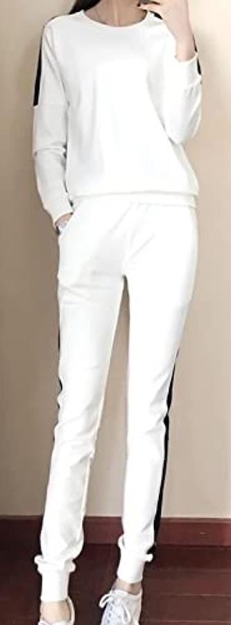 *パンツはジョガースタイルになっていて、脚部が先細りになったデザインと、高さのあるリブ仕様の裾で、白色シューズ際立出せます*