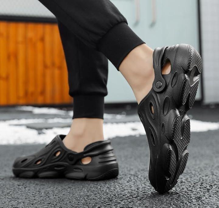 ストラップを後ろに動かせばピッタリと足にフィットするスタイル、前に動かせばクロッグサンダルとして履くことが可能。