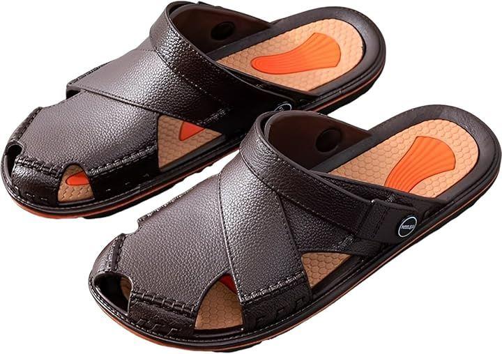 レザー調で大人な雰囲気を演出できるバックストラップサンダル。