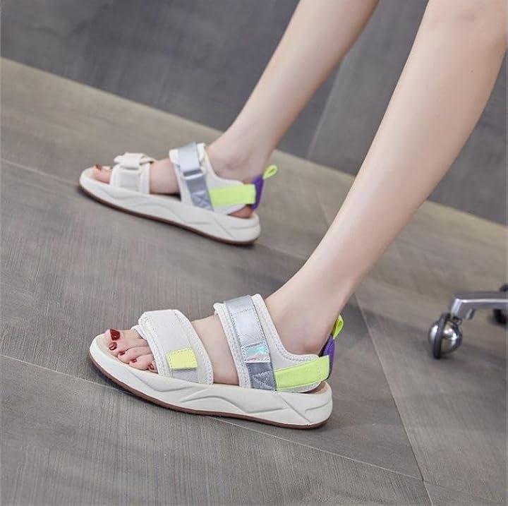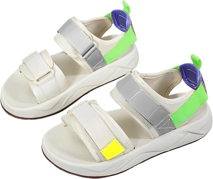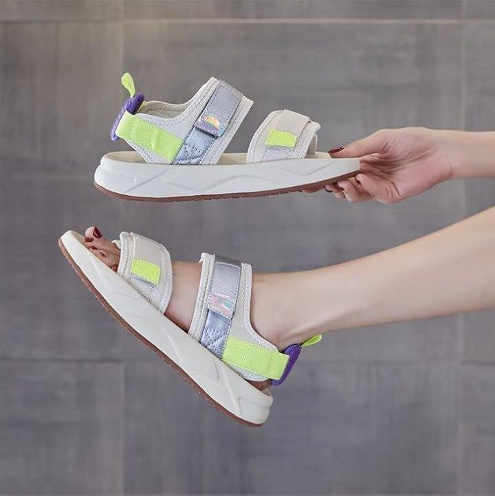 *つま先・甲に調節可能な面テープ付きベルトを配置した2連ベルトデザインのスポーツサンダル