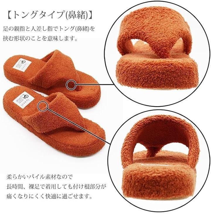 *綿100%のコットンパイル素材のサンダル風ルームシューズは、足先の解放感があり、ムレが気になる方にもおすすめのトングタイプスリッパ。