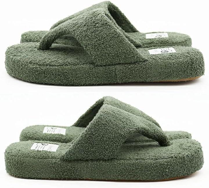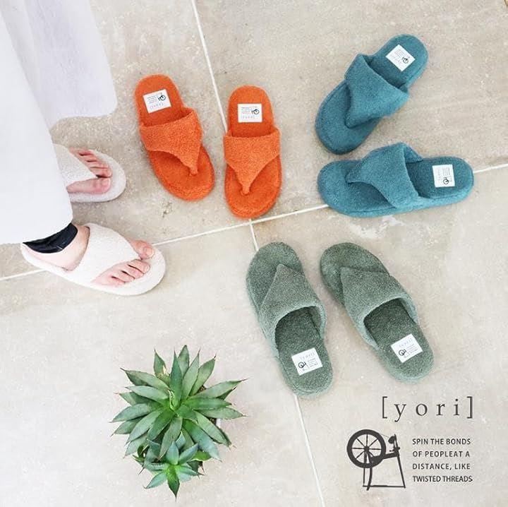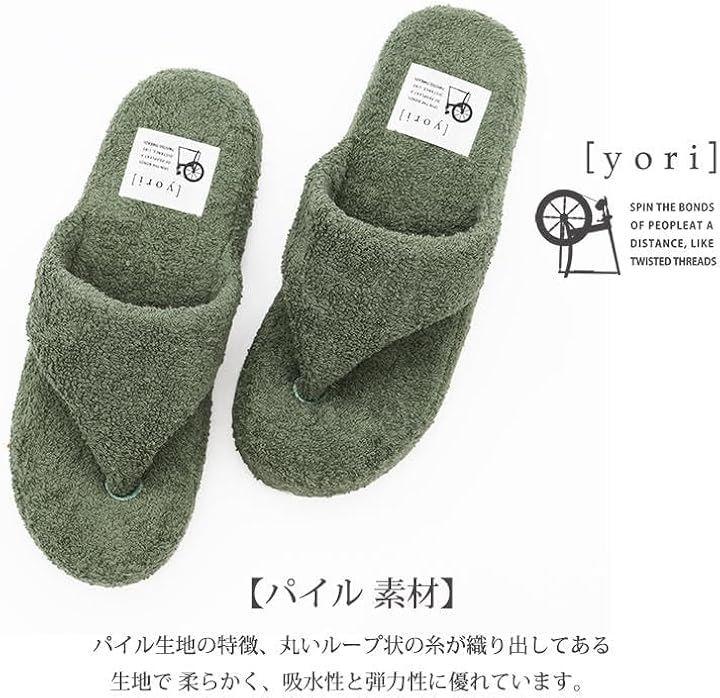 綿100%のコットンパイル素材のサンダル風ルームシューズは、足先の解放感があり、ムレが気になる方にもおすすめのトングタイプスリッパ。
