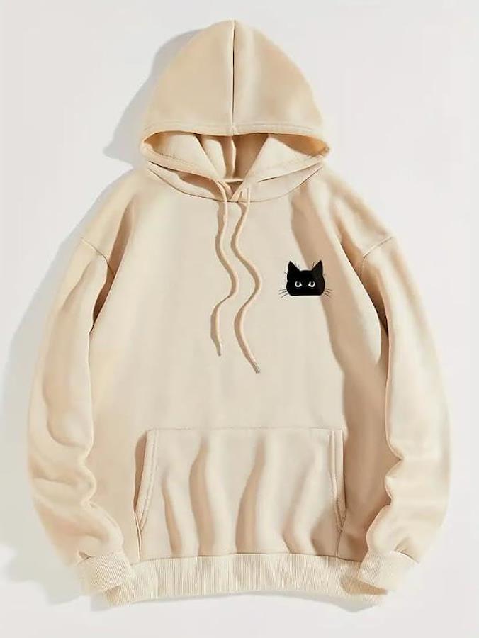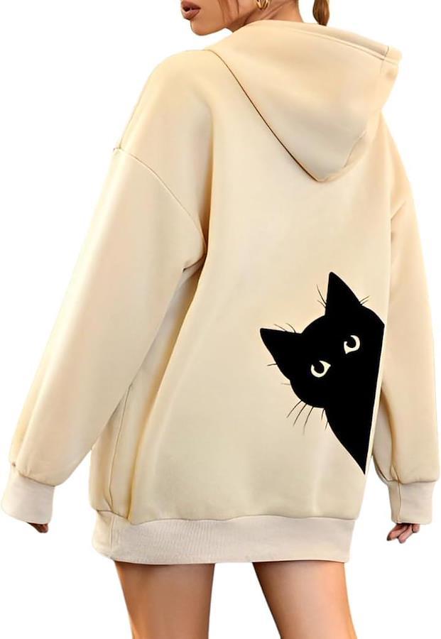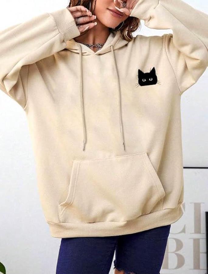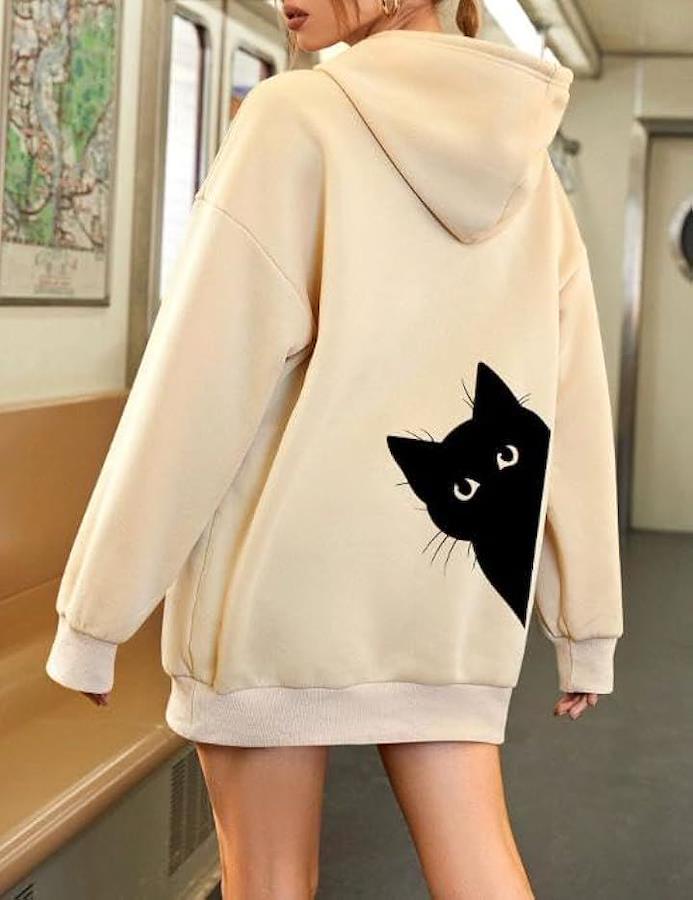 ドロップショルダーのシルエットでトレンドのシルエットが作れるネコ柄パーカーです