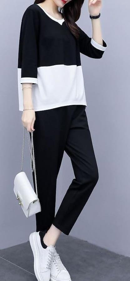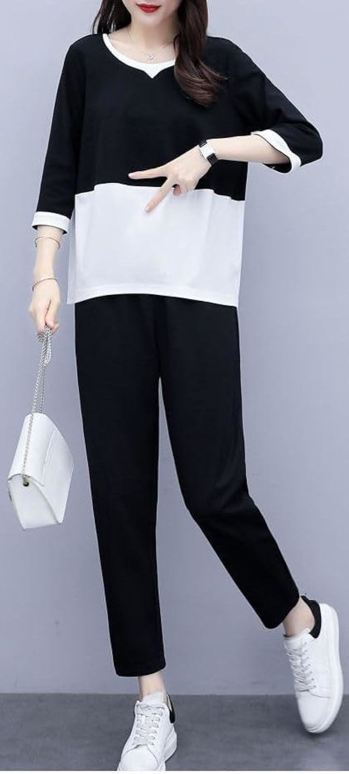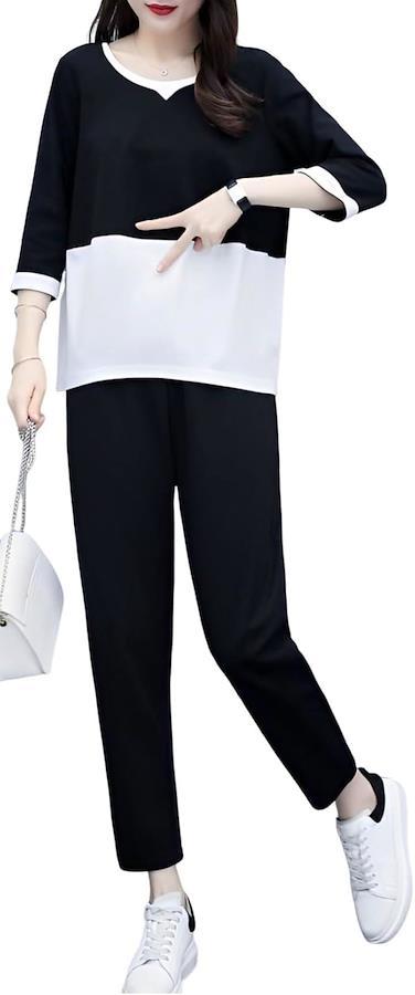 *半袖のクルーネックトップスとアンクル丈のパンツの上下2点セットです。