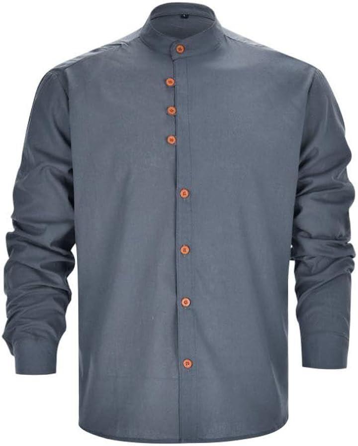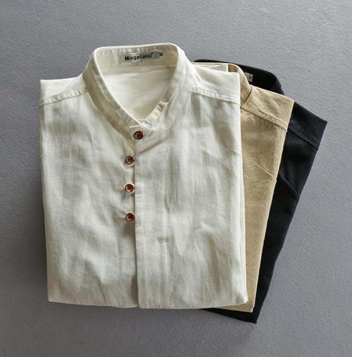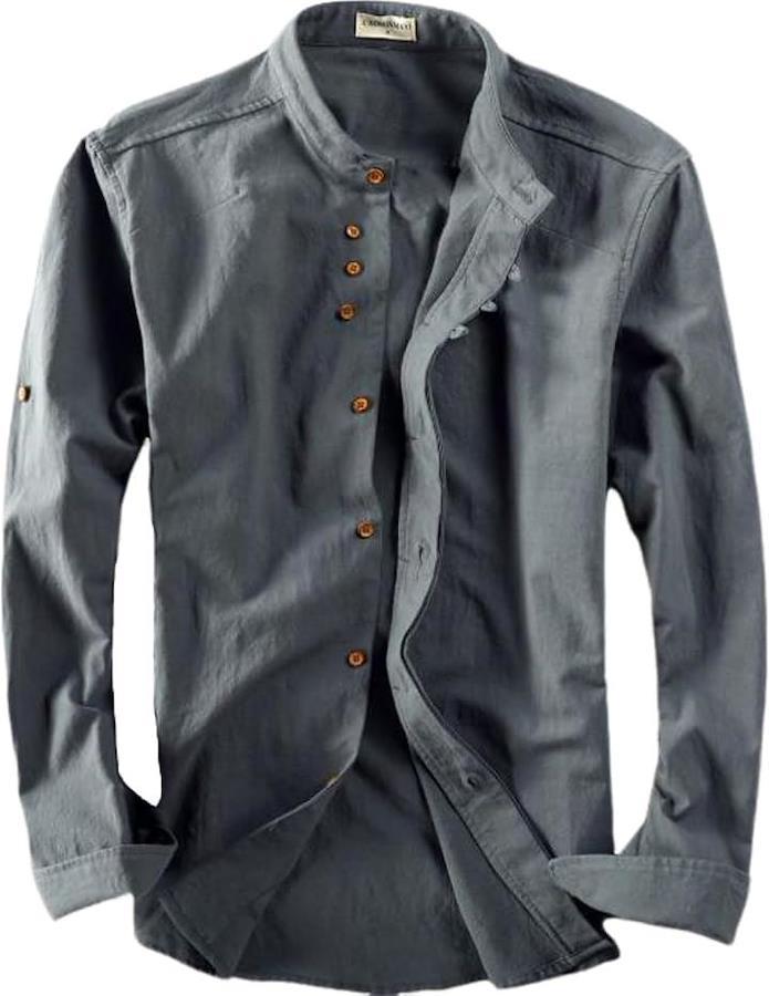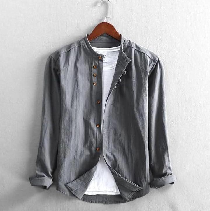 カジュアルにもビジネスにも着れる、おしゃれなメンズ無地バンドカラーシャツ