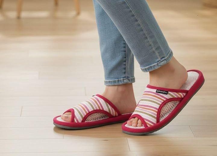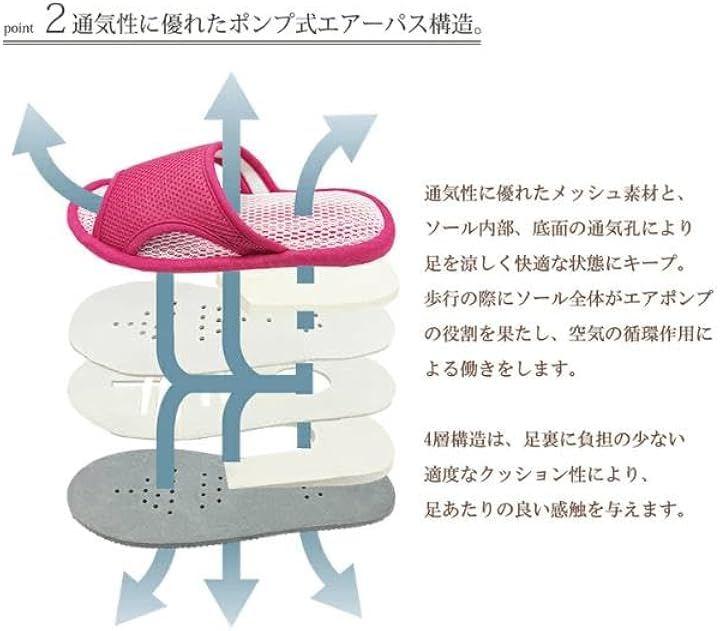 この暑い夏に心地良い風が通るふしぎなスリッパが登場しました。 歩くたびにインソールポンプがこもった空気を押し出してくれる軽量スリッパ