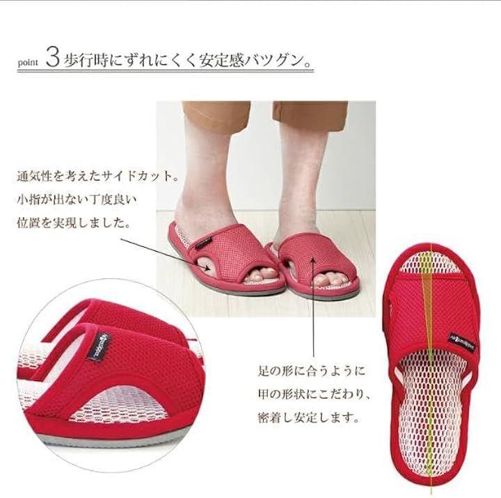 この暑い夏に心地良い風が通るふしぎなスリッパが登場しました。 歩くたびにインソールポンプがこもった空気を押し出してくれる軽量スリッパ