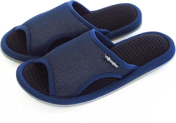 この暑い夏に心地良い風が通るふしぎなスリッパが登場しました。 歩くたびにインソールポンプがこもった空気を押し出してくれる軽量スリッパ