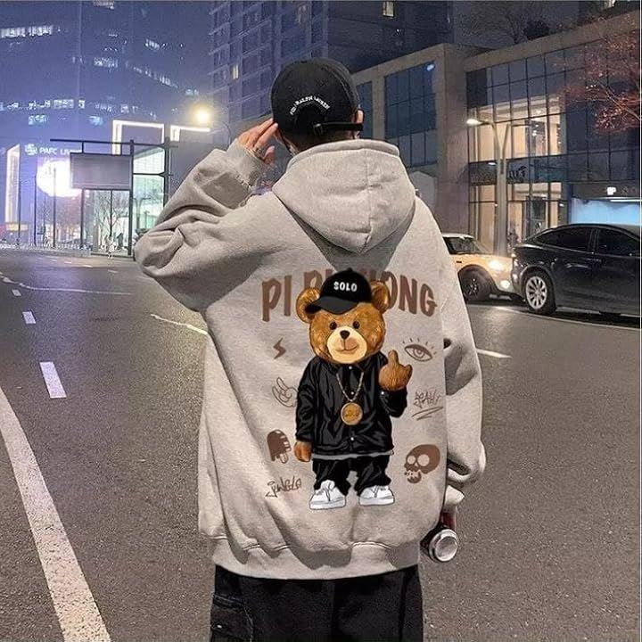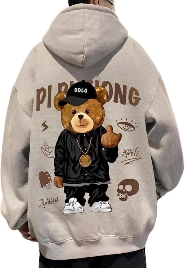 クマのバックプリントがポップで可愛らしい、カジュアルパーカー