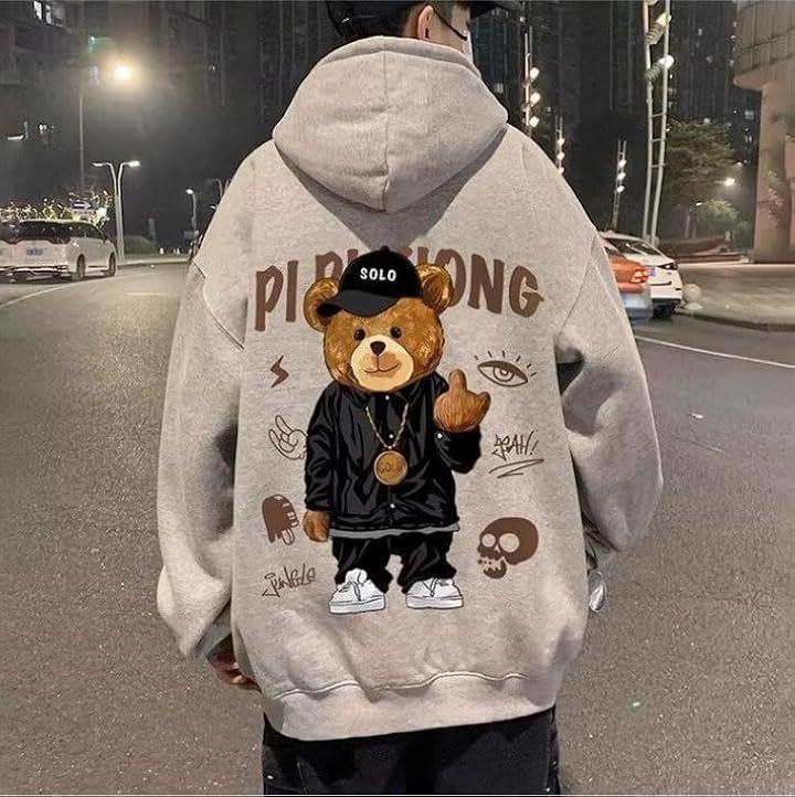 クマのバックプリントがポップで可愛らしい、カジュアルパーカー