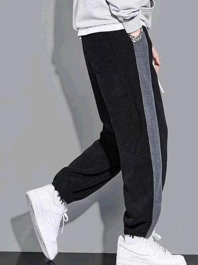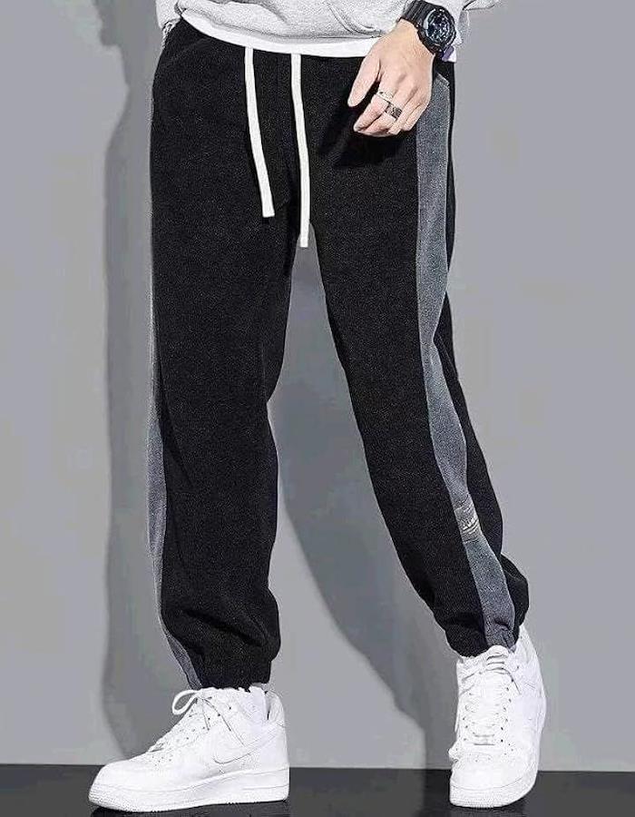 *パンツのサイドに、ラインが入ったシンプルジョガーパンツ。