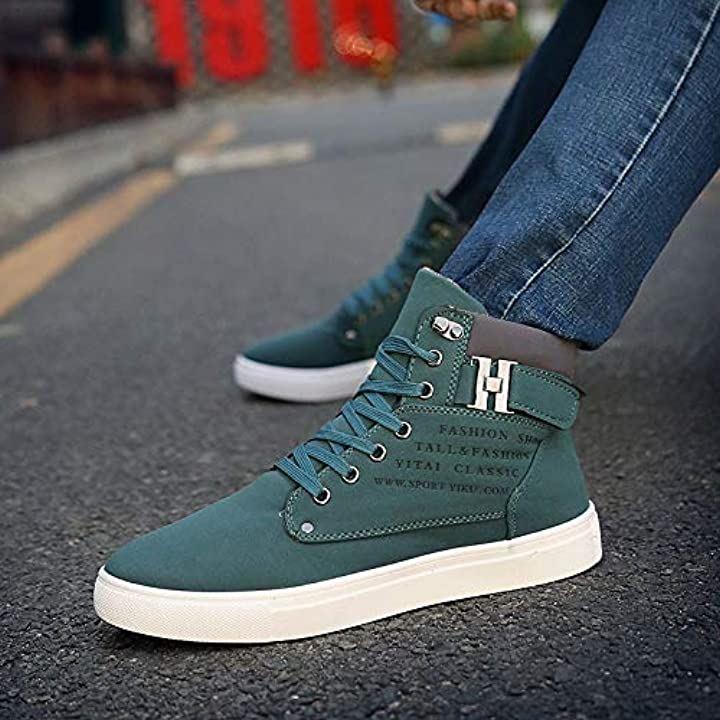 ・*しっかりとした生地の厚底タイプのスニーカー**衝撃を吸収してくれるPVCソールでクッション性に優れ、疲れにくく快適な履き心地のカジュアルシューズ**軽量で滑りにくいデザインで、ハイカットデザインながらも履き心地の良い一足です**タウンユースで気軽なスタイルを楽しんで*