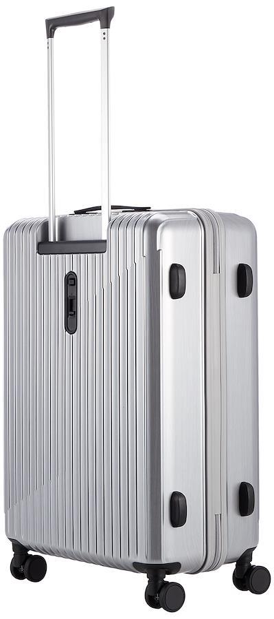 大ヒット商品『ACE クレスタ』のデザインと機能をアップデートした『ACE クレスタ2』がデビュー。 スタイリッシュなデザインのボディシェルとヘアラインの加工が施されたカラーが映える高級感のあるスーツケース。 5~7泊程度の旅行や出張に適した、コンパクトながら大容量のスーツケースです。 ●電車やバスなどの公共機関や空港、坂道などでキャスターの不意な走行を防止するキャスターストッパ-付。背面にあるスイッチで簡単に操作できます。 ●旋回性に優れ、容易に方向転換が可能な双輪キャスター。 ●身長や持ち方に合わせて調節可能なシステムハンドル。 ●施錠したまま預けることができるTS LOCK(Travel Sentry 認可ロック)を搭載。キーを必要としない3ケタのダイヤル式。 ●抗菌加工を施した内装生地を採用。 ●内装は両面ともファスナーの仕切り付の為、開閉時の荷こぼれを防ぎます。登録情報外装素材 ABS混合樹脂 【外寸サイズ】 H67×W44×D27cm【容量】 60L5~7泊【重量】 3.8㎏キャスターストッパー