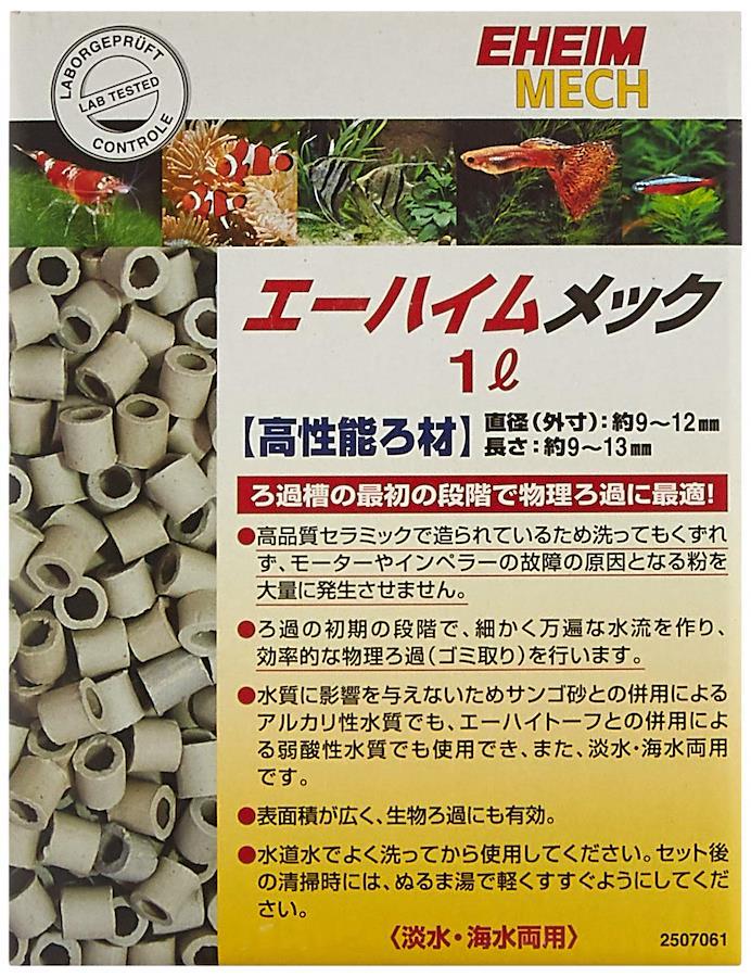 エーハイムメックは他社製類似製品に比べてやや小さ目に出来ております。小さ目のサイズのおかげで水流が細かく拡散させ、しかも物理的なゴミを多くキャッチします。