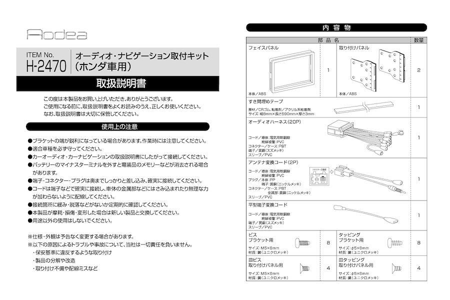 エーモン AODEA(オーディア) オーディオ・ナビゲーション取付キット ホンダ車用 H-2470
