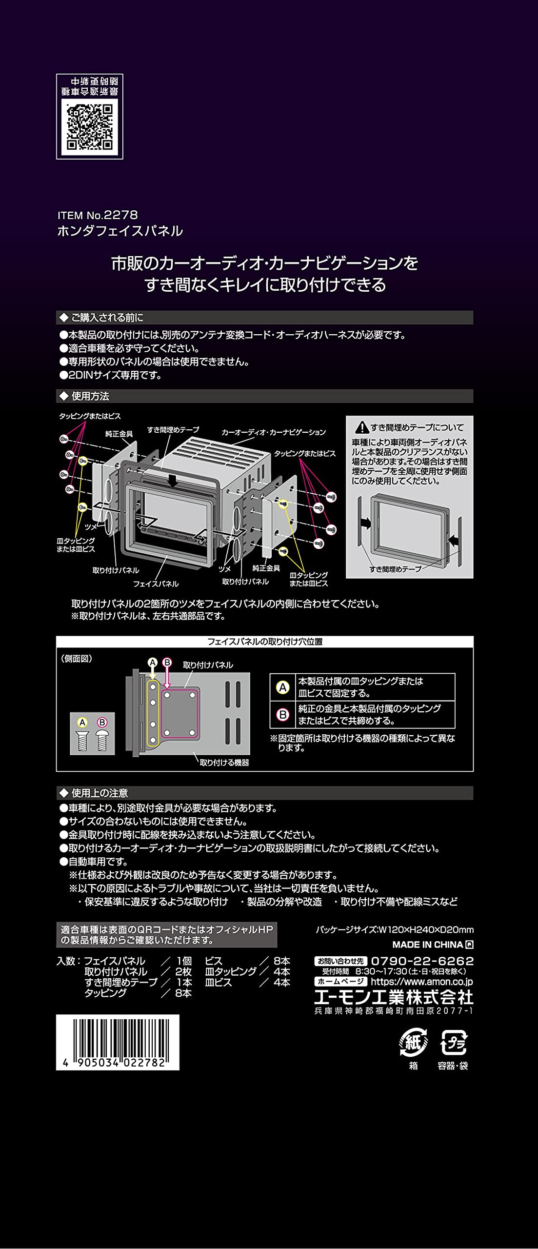 エーモン(amon) AODEA(オーディア) ホンダフェイスパネル ホンダ車用 2278