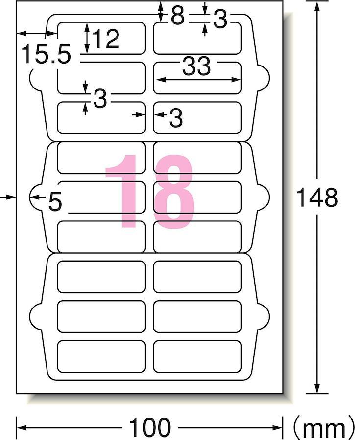 手書き・プリントどちらでも使えるラベルです。少量でも手軽に作れるはがきサイズ。各種表示用に便利なサイズのラベルです。印刷後に手書きで書き加えることもできて便利です。●シートサイズ:はがきサイズ(100×148mm)●面付:角型18面 2列×9段●一片サイズ:33mm×12mm●標準総厚み:150.0g/㎡(0.17mm)●ラベル厚み:0.11mm●材質:上質紙●入数:12シート(216片)●インクジェット(染料+顔料)、レーザー、コピー