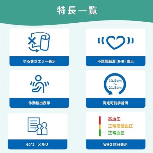 健康管理のために収縮期?圧及び拡張期?圧を?観?的に測定すること。 医療機器区分:特定管理医療機器 医療機器認証(承認)番号:229AHBZX00020000 測定方式:オシロメトリック方式 圧力測定範囲:0~299mmHg、脈拍測定範囲:40~180拍/分 標準付属品:取扱説明書(保証書付き)、添付文書、単4形アルカリ乾電池(お試し用)