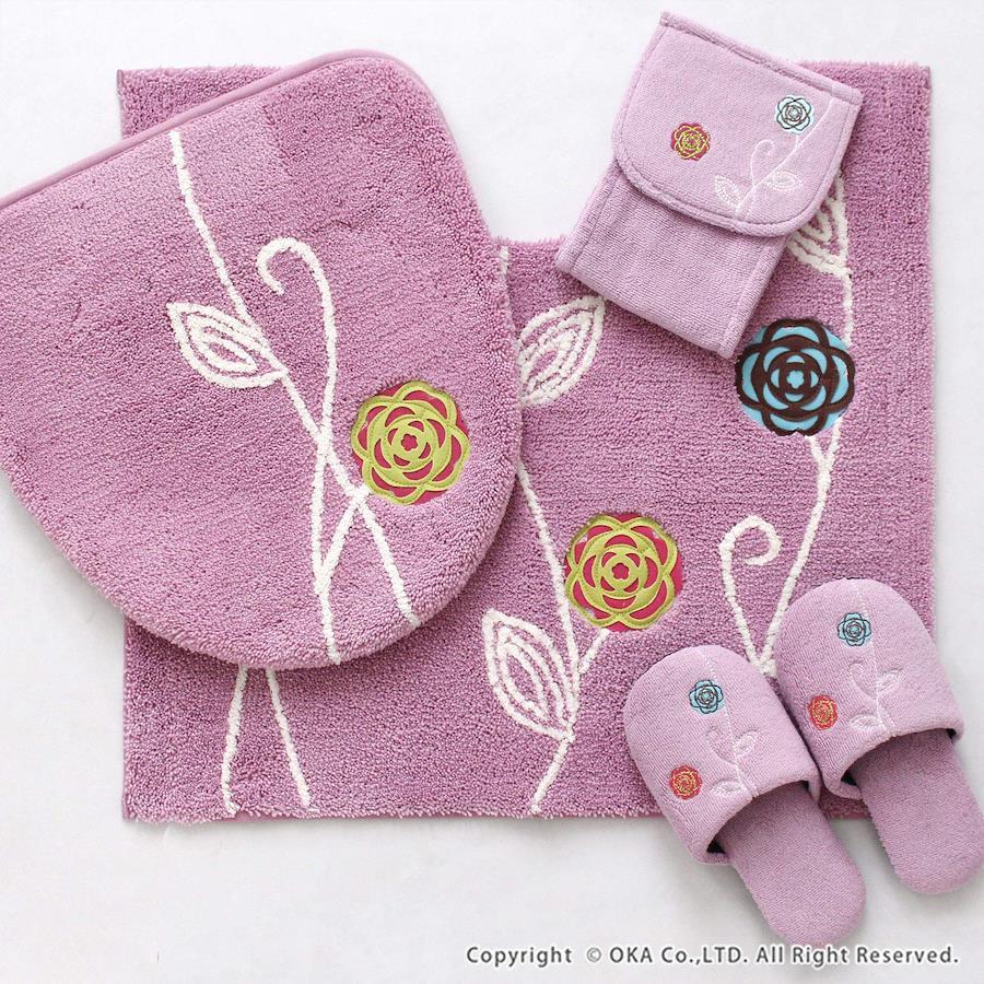 シンプルなマットにデザインされたフラワーモチーフのアップリケがアクセントの北欧風デザイン。あたたかく、心地よく、自宅で過ごす時間がほんの少し、素敵になりそうなゆったりとした雰囲気のトイレタリーです。