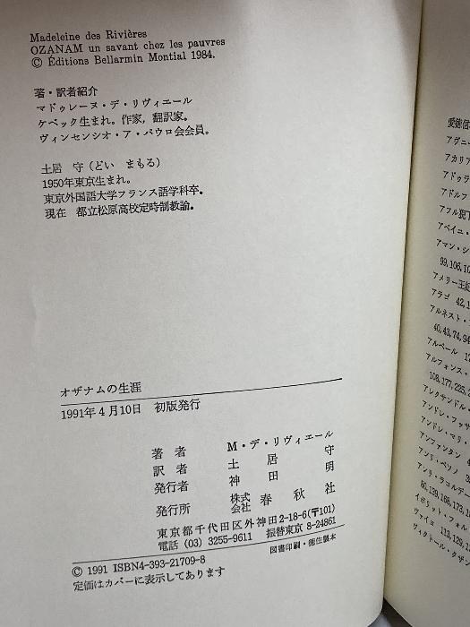 商品名:オザナムの生涯 春秋社 マドレーヌ・デ リヴィエール