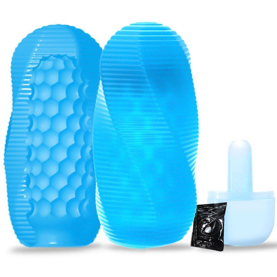 オナホ オナホール 非貫通タイプ 男性用 【乾燥スタンド付き+ミニローションあり+360°凸凹】小型おなほ アダルトグッズ 半透明 にんき人気 スパイラル 繰り返し 螺旋 オナ二ー 洗えるオナホーる ぷるぷる肉厚ホール 高弾力 水洗い 保管便利 非貫通式おなほーる 大人のおもちゃ sex toys男性for men 青い