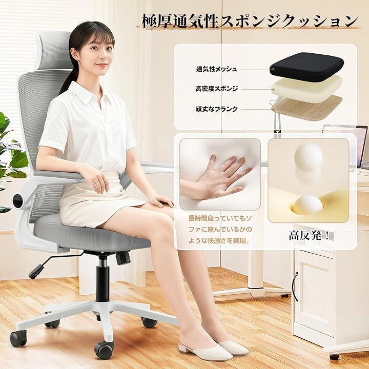 「通気性メッシュx静音キャスター|オフィスにも家庭にも最適」背もたれには通気性の高いメッシュ素材を採用。