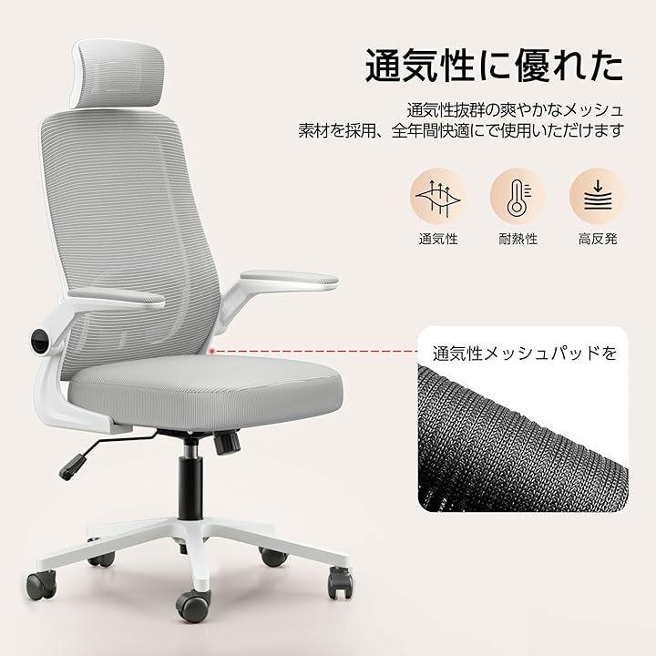 このオフィスチェアは2Dヘッドレストを採用して7cm上下昇降可能で45°角度調整でき、自分に適する高さや角度を調整して頭部や首を支えることができます。