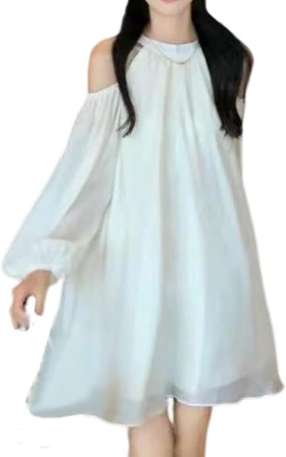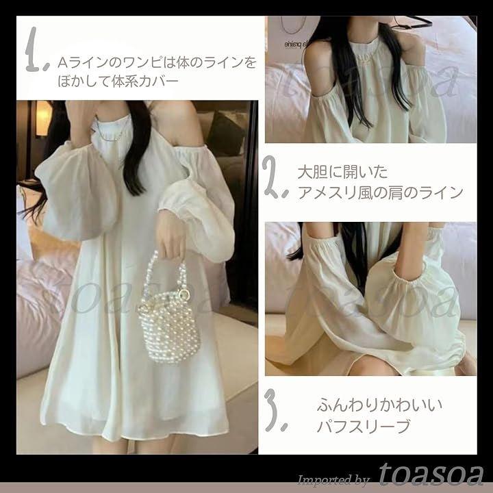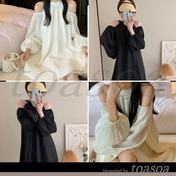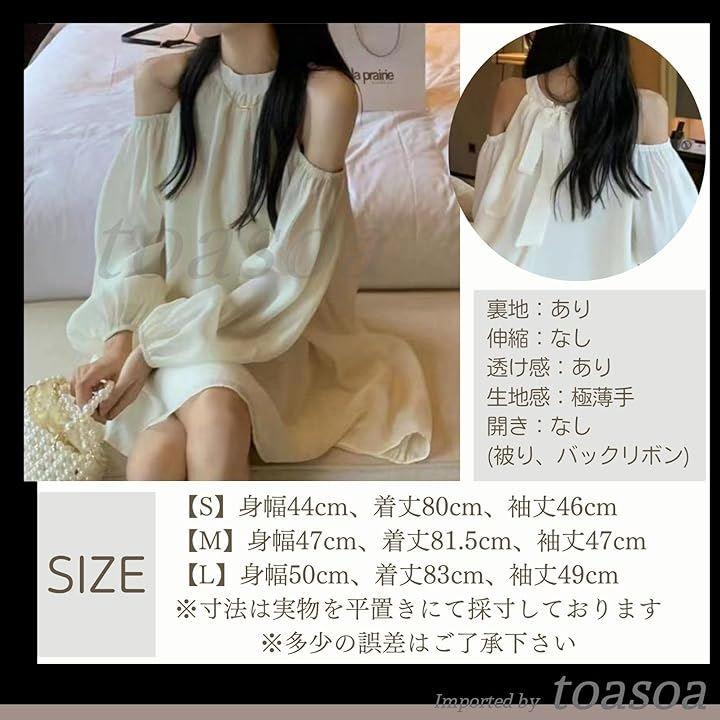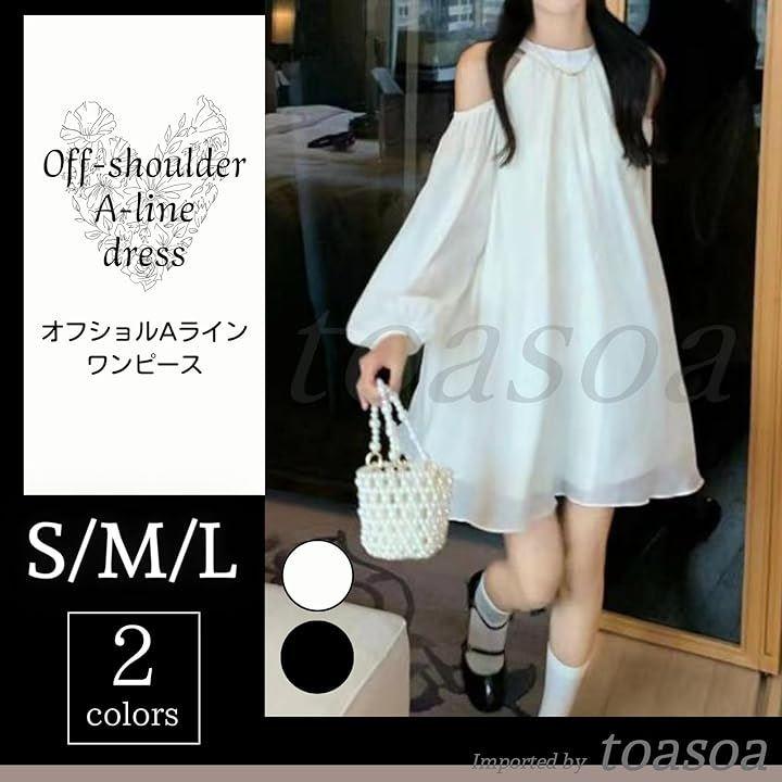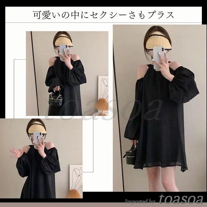 オフショルダー ワンピース ミニ レディース きれいめ 長袖 aライン シフォン フレア 02 -