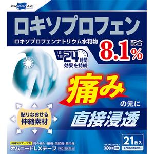 ■商品概要メーカー:テイコクファルマケア商品名:オムニードLXテープ 21枚医薬品分類:第2類医薬品区分:OTC医薬品小児用区分:大人用(大人(15歳以上)の用量・用法しかない)薬剤形状:湿布・絆創膏内容量:21枚商品概要:ロキソプロフェンNa水和物を8.1%配合した、貼りなおせるテープ剤【使用期限】出荷時点で使用期限終了まで1年以上JANコード:4987373081989商品コード:028101182