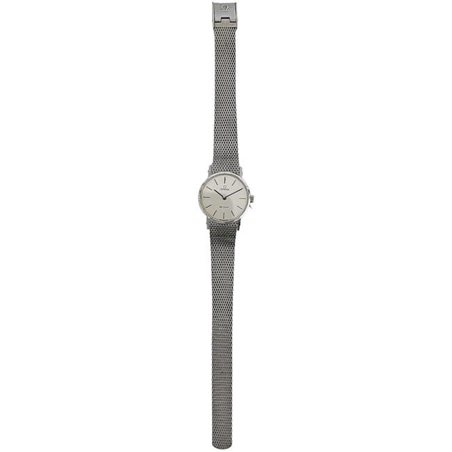 ☆---- 商品について ----☆オメガ 腕時計 デヴィル f-24296 シルバー レディース 時計 SS 中古 手巻き OMEGA 女性 ヴィンテージモデル メッシュブレス スライド式 サイズ調節可能 シルバー文字盤 定番 人気 アナログ シンプル スライドバックル ラウンドフェイス ブランド 本物 鑑定済み