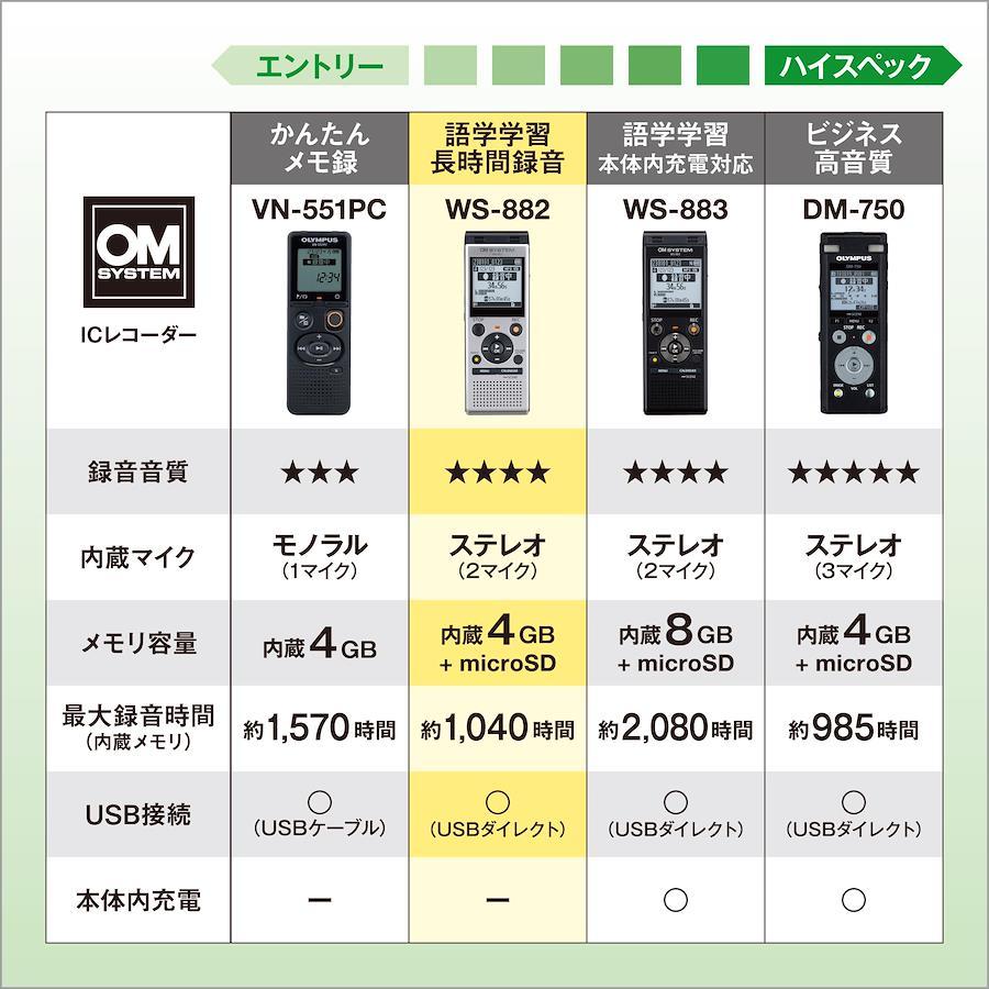 講義の録音や語学学習からビジネスまで幅広く活躍するスタンダードレコーダ―。<br><br>便利な機能が充実した録音・再生機能搭載のICレコーダーです。<br>自動で最適な録音レベルで記録する「ボイスチェイサー」や、<br>耳が疲れない音程で再生できる「ボイスチェンジャー」といった便利な機能に加えて、<br>「早聞き・遅聞き再生」「シャドーイング」などの語学学習に役立つ機能も充実しています。<br>語学学習用の音声ファイルを大量に保管できるうえ、<br>長時間の会議を連続して録音するような使い方をしても容量不足になりにくく、より安心して使用できます。<br>講義の録音や語学学習からビジネスまで幅広く活躍するレコーダーです。