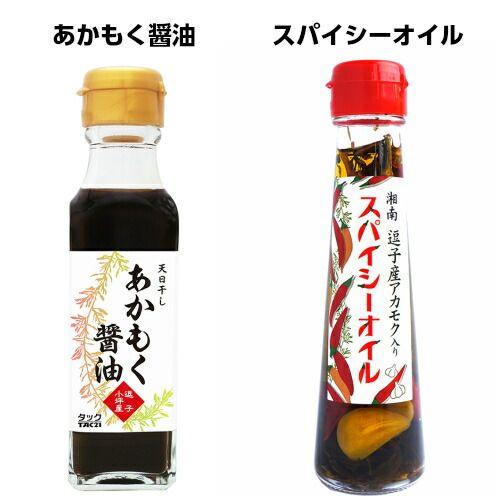 あかもく醤油湘南スパイシーオイルあかもく調味料セットは、天然あかもくを漬け込んだ醤油とスパイシーなオイルのお得なセットです。