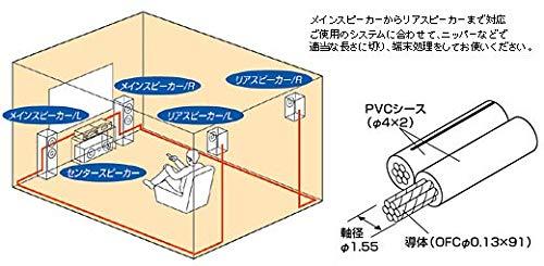 サラウンド感・臨場感をサポートする高音質設計。 太さはφ4×2mm。柔軟素材の採用により長い引き回しも容易。 メインスピーカーからリアスピーカーまで各種スピーカーに対応。